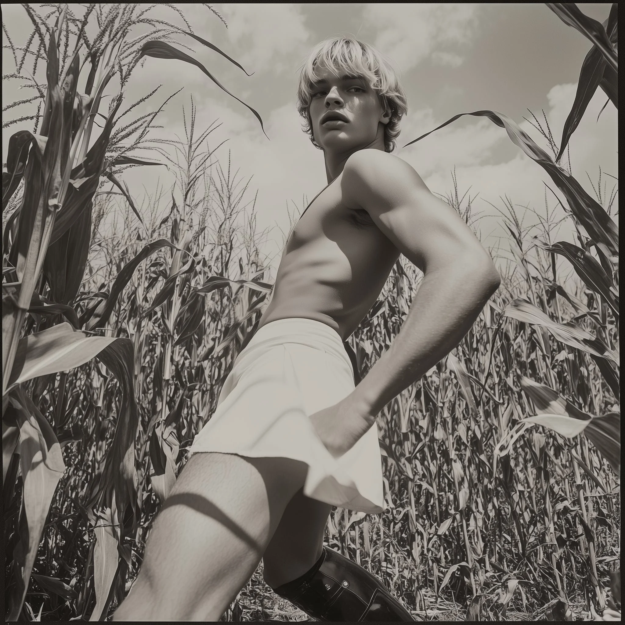 Here, the cornfield is more than a backdrop—it is a place where the line between reality and fantasy dissolves, where identity becomes fluid and limitless. With each step they take through the tall, whispering stalks, they embody a journey of self-discovery, inviting us to believe in the unseen and to embrace the beauty of becoming. Like the iconic words from Field of Dreams, "If you build it, they will come," the cornfield becomes a sanctuary where one’s true self can emerge, unafraid and unbound.